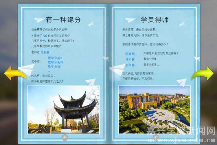 毕业纪念册是每位毕业生大学时光的缩影,记录着大学生活的点点滴滴。毕业纪念册的背景音乐为嘉院版《成都》,包含“初入校园”“有一种缘分”“学贵得师”“时光成绩单”“恣意多彩的大学生活”“各类型消费详情”“智者阅读群书”“大学时光”等模块,记录了毕业生所在班级、授课老师、成绩单、消费记录、阅读记录、运动情况、获奖和荣誉称号、离校安排等,让毕业生能够重拾大学记忆,追忆往昔,难忘师恩,感恩母校。