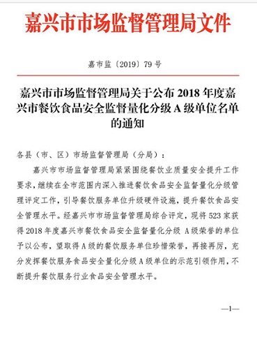 近日,嘉兴市市场监督管理局发布通知,我校越秀校区第一食堂、越秀校区春华苑自选餐厅、梁林校区第一食堂二楼餐厅、梁林校区第二食堂被评定为“2018年度全市餐饮食品安全监督量化分级A级单位,其中外包租赁单位梁林校区第一食堂一楼餐厅更是首次通过A级评定。