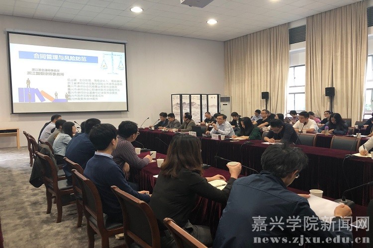 培训会邀请浙江国傲律师事务所高级合伙人岳丛啸律师作了题为《合同管理与风险防范》的报告。岳律师从合同的概念、基本要素、履行、结束及合同管理的风控意识等几个方面开展讲解,深入浅出,理论结合实践,有很强的实用性和指导性。校长办公室合同管理负责人从内部管理角度,对学校的合同业务流程以及合同管理工作中应注意的事项做了说明。