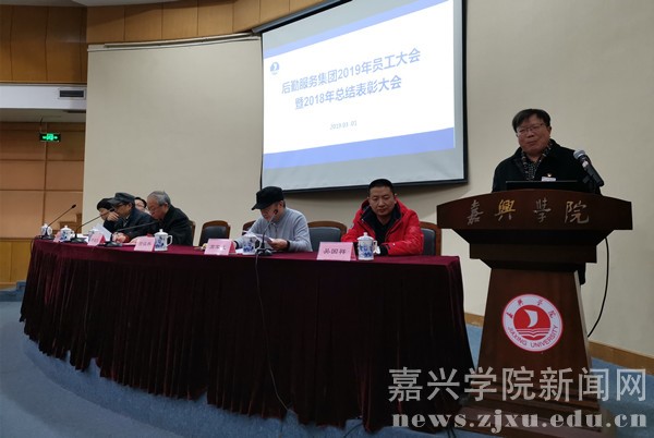 大会听取了集团总经理贺征兵作的《后勤服务集团2019年工作计划》报告。他指出,2019年,集团将紧紧围绕学校工作要点,团结奋进,逐梦奔跑,为学校申硕创大提供优质的后勤保障服务。工作的基本思路是以习近平新时代中国特色社会主义思想为指导,全面贯彻落实党的十九大精神、全国高校思想政治工作会议、全国全省教育大会精神和省第十四次党代会精神,以建设“阳光后勤、安全后勤、智慧后勤、文化后勤”为目标,以“后勤服务品质升级”为工作主线,紧扣安全稳定、服务保障和立德树人三大核心任务,探索建立与嘉兴大学建设目标相适应的后勤保障体系。主要工作任务是夯实党建基础,提升党建水平,齐心共建“清廉后勤”;围绕申硕创大,解决民生实事,推动服务品质升级;推进目标管理,强服务促效益,深化内部体制改革;提升后勤队伍,拓展宣传渠道,打造红船文化品牌等四大方面。