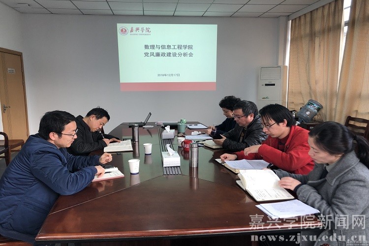 12月17日下午,数信学院党委在8号楼325召开2018年度党风廉政建设情况分析会。副校长胡俊云,纪委副书记兼纪委办主任、监察处处长黄金珠到会指导,学院党政班子成员参加会议。