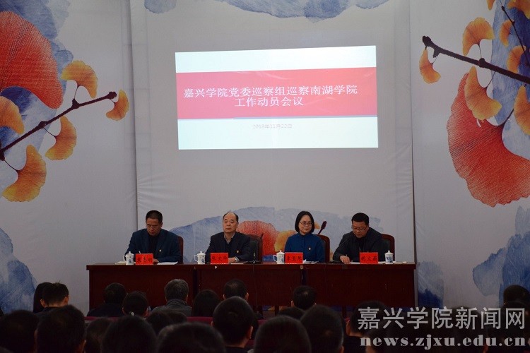 学校党委巡察组全体成员,南湖学院党政领导班子、各系负责人、民主党派代表、青年教师代表、学生代表等100余人参加动员会。