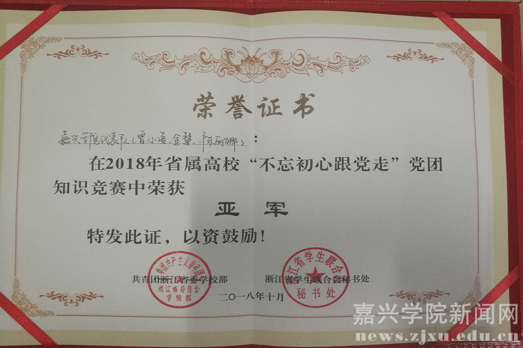 10月28日,2018年省属高校“不忘初心跟党走”党团知识竞赛在杭州师范大学仓前校区举行,我校学子组成的代表队荣获竞赛亚军。