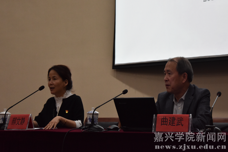 10月30日晚,“时代楷模”及第六届“全国高校辅导员年度人物”曲建武教授应邀到我校为辅导员作主题报告。校学工部部长郝文静出席并主持报告会,我校及嘉兴市其他高校160余名辅导员到场聆听。