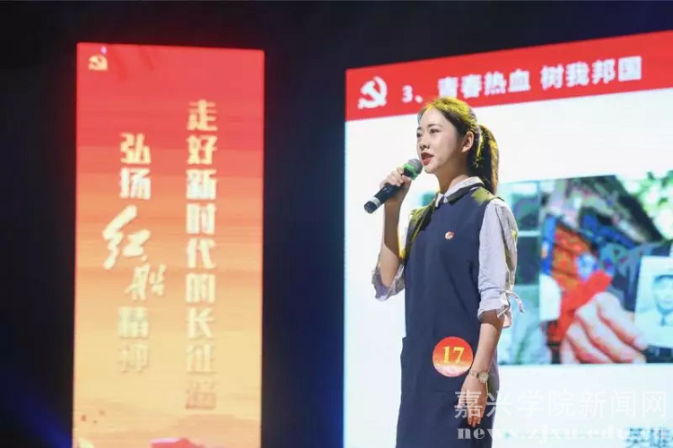 金航婷同学从不忘历史讲起,表达了青年学子不忘初心,牢记使命,弘扬红船精神,在实现中国梦的实践中放飞青春梦想,在为人民利益的不懈奋斗中书写人生华章的决心,获得了现场评委和师生党员的好评。