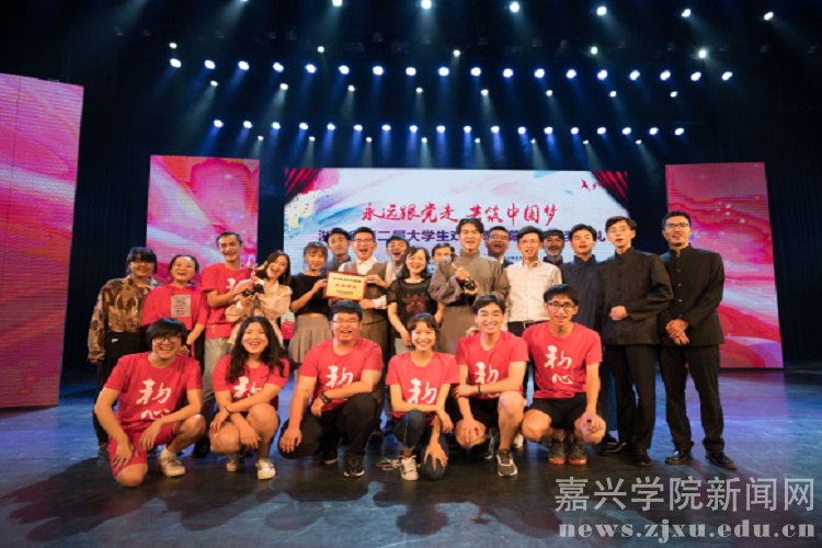 在本届戏剧周演出中,《初心》获得了广大师生和社会人士的一致好评。此次演出是《初心》在剧情设计、灯光舞美优化升级之后的首场演出。它以中共一大转移到南湖红船召开的史实为创作主体内容,以20世纪初叶国内外时局为背景,以“一大”代表李达爱人,会务人员、嘉兴籍王会悟的经历为主线,重现了毛泽东、董必武、李达、李汉俊等13位一大代表创立中国共产党的光荣历程。