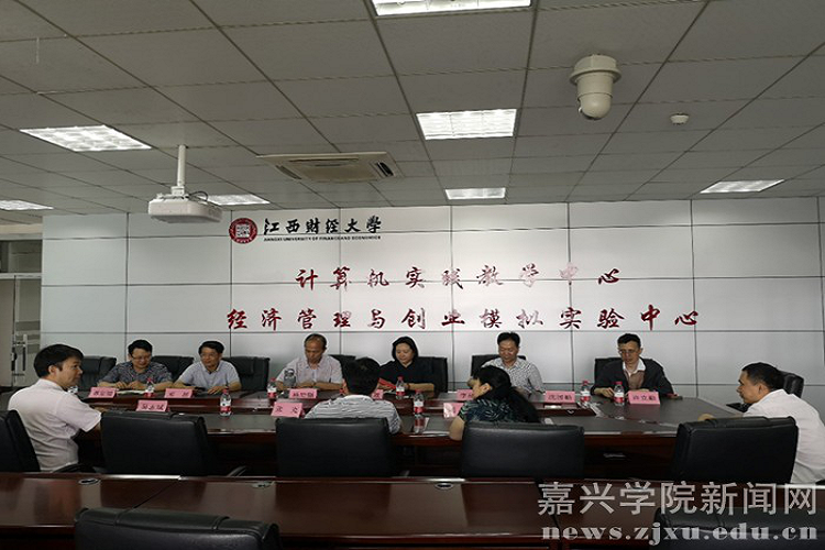 江西财经大学经济管理与创业模拟实验中心副主任吴志斌介绍了该校的基本情况和实验中心的基本工作内容、运作管理情况。双方就实验中心人员体制结构、教学任务安排、实验室信息化建设、实验教学团队建设、实验室硬件建设管理等内容进行了深入探讨和交流。会后,考察团成员现场参观了各个实验室。