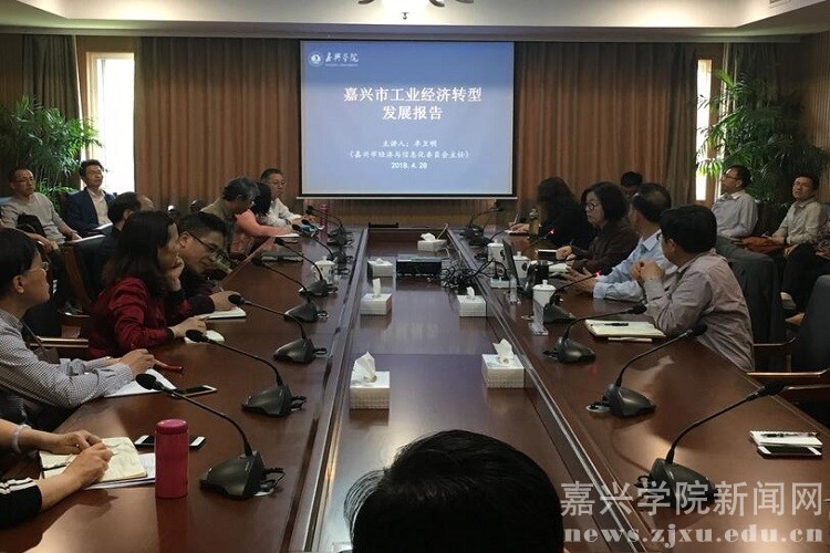 4月28日下午,嘉兴市经济和信息化委员会主任卓卫明来校作“嘉兴市工业经济转型发展”的专题报告。校党委书记黄文秀、副校长胡俊云以及来自各学院的70余名教师聆听报告。校党委委员、人文社科处处长富华主持报告会。