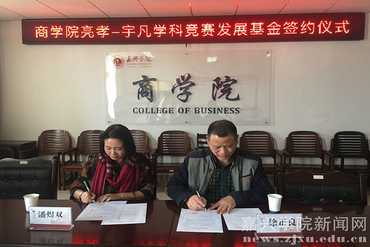 4月28日下午,商学院亮孝-宇凡学科竞赛发展基金和嘉泽学科竞赛发展基金签约仪式举行。商学院院长潘煜双、党委副书记陈云飞,宇凡公司创立者徐正良,商学院财务03级校友叶增水出席仪式。