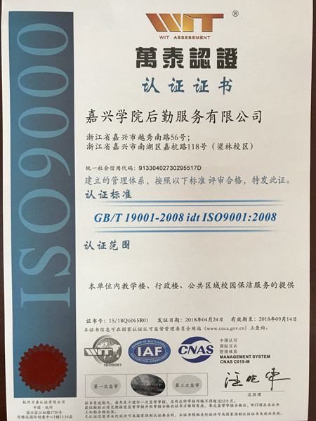 据悉,后勤服务集团于2015年顺利获得ISO9001证书,将教学楼、行政楼、公共区域的校园保洁服务等内容进行了ISO9001质量体系认证,贯标3年来,坚持科学化、标准化、规范化原则,全面开展各项工作,各项服务工作有了明显提升。此次顺利通过ISO9001质量管理体系复评认证,有利于进一步规范质量管理,强化目标与过程管理,促进管理与服务有机结合,更好地为广大师生提供优质的后勤保障服务。