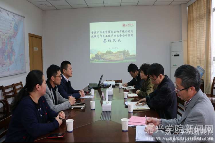 4月16日下午,数信学院与宁波宁工教育信息咨询有限公司举行校企合作签约仪式。学院执行院长朱蓉与公司总经理陈明共同签订校企合作协议书。宁波宁工教育信息咨询有限公司有关负责人,数信学院副院长张景军,党委副书记余德将及党政办老师等参加签约仪式。