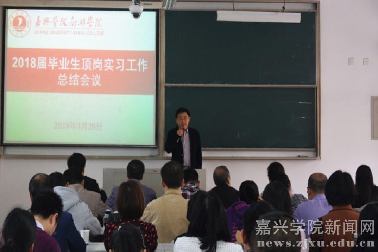 3月29日下午,南湖学院召开2018届毕业生顶岗实习工作总结会议。副校长、南湖学院院长胡俊云主持会议。南湖学院各系、部门、专业负责人及师生代表参加会议。