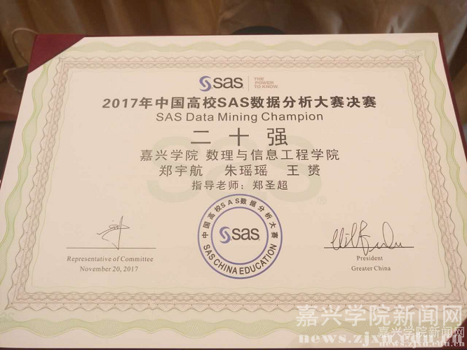 11月20日,第五届中国高校SAS数据分析大赛全国总决赛落幕,我校数理与信息工程学院一支参赛队伍荣获全国第14名,数信学院宁同科老师荣获优秀组织奖。