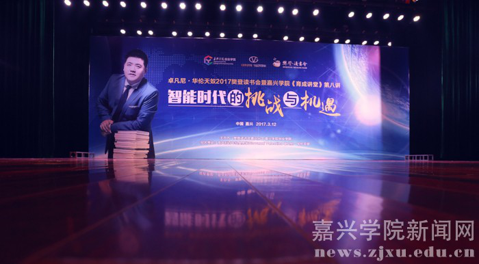 3月12日下午,樊登读书会暨嘉兴学院创业学院《育成讲堂》第八讲在我校梁林校区小剧场举行。原央视主持人、“樊登读书会”创始人、MBA资深讲师樊登作了题为“智能时代的挑战与机遇”的演讲。