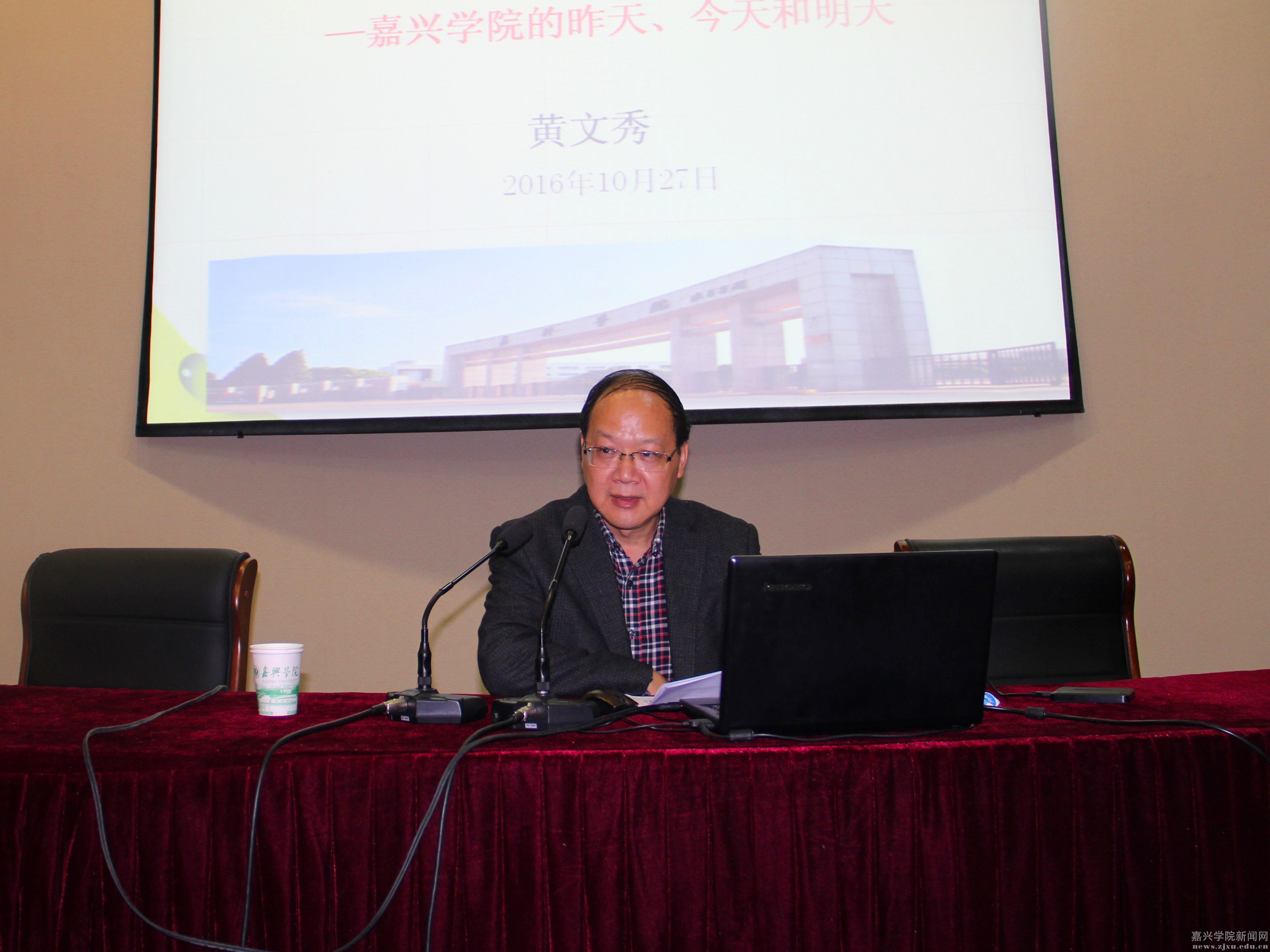 10月26日晚,由教师发展中心组织的嘉兴学院2016年新入职教师培训班在越秀校区行政楼一楼报告厅开班。开班仪式后,校党委书记黄文秀为110余名新入职教师作题为“不忘初心,继续前行——嘉兴学院的昨天、今天和明天”讲座。