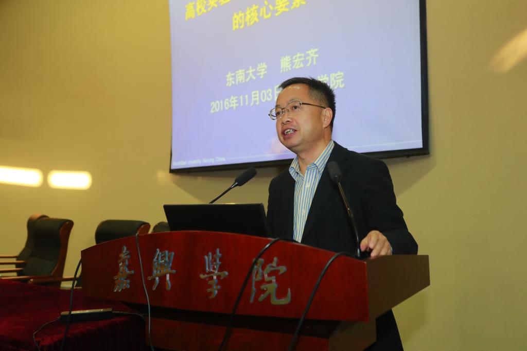 11月3日下午,教育部实验教学指导委员会秘书长、东南大学实验室与设备管理处处长熊宏齐教授应邀来我校作“高校实验教学中心内涵式发展的核心要素”专题辅导报告。旨为推进我校实验教学示范中心建设,深化实验教学改革,提高实验教学质量。全校分管实验教学工作负责人、系主任、专业负责人、实验中心(室)负责人、实验教学教师和相关部门管理人员等100余人参加报告会。