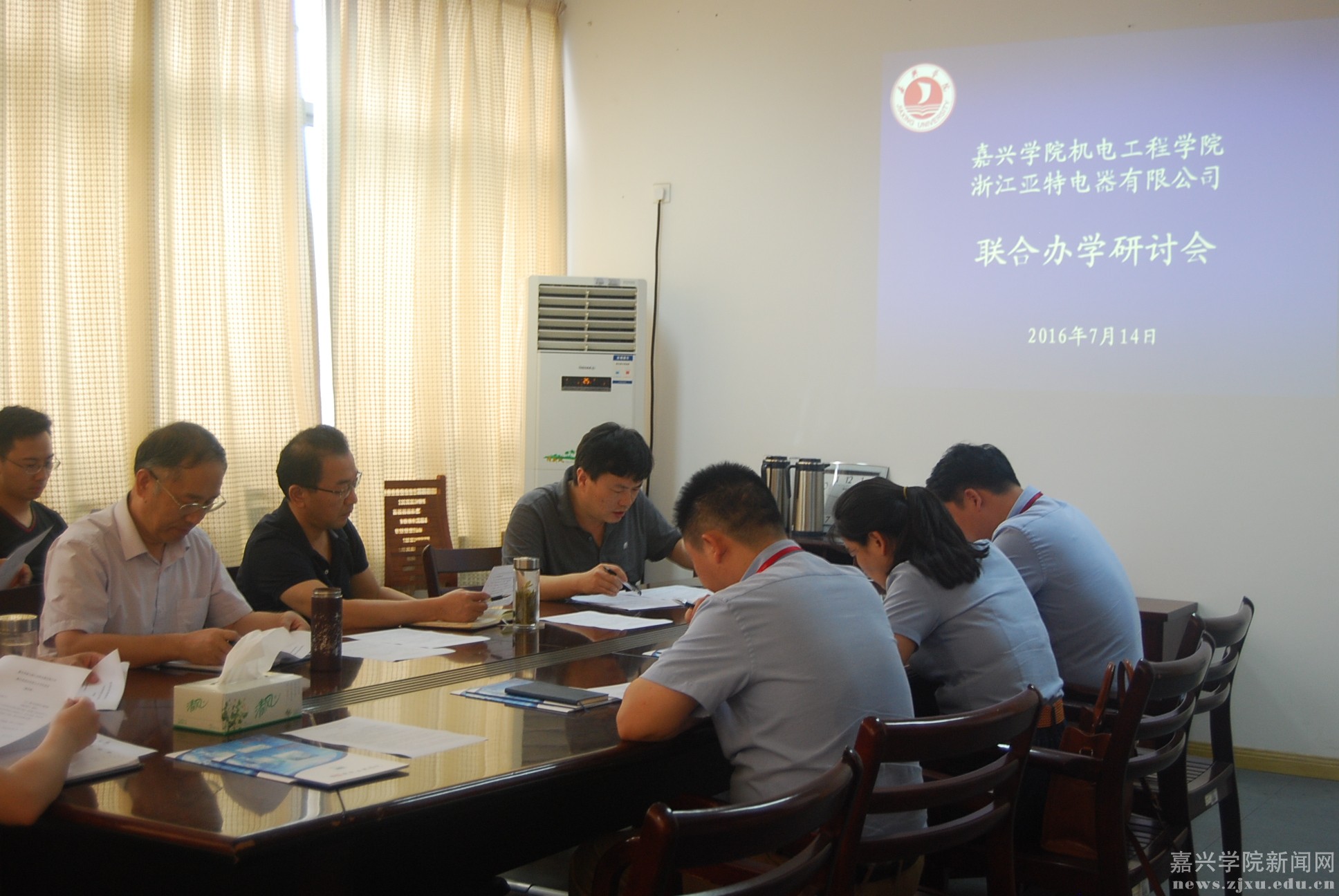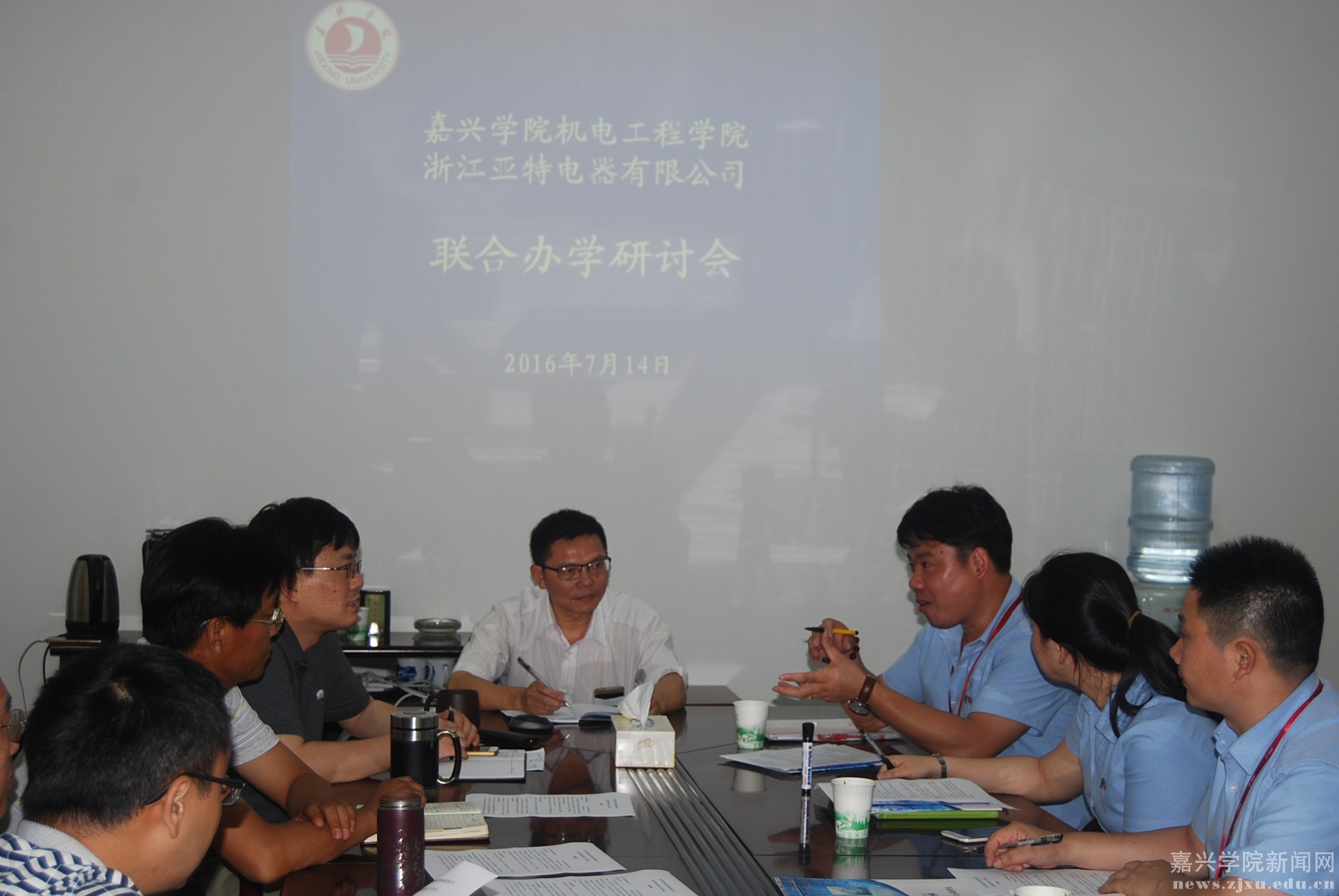 7月14日,机电工程学院与浙江亚特电器有限公司召开联合办学(培养应用型人才)研讨会。浙江亚特电器有限公司人力资源部总监宋沐阑一行,机电工程学院党政班子成员、相关教师参与研讨会。