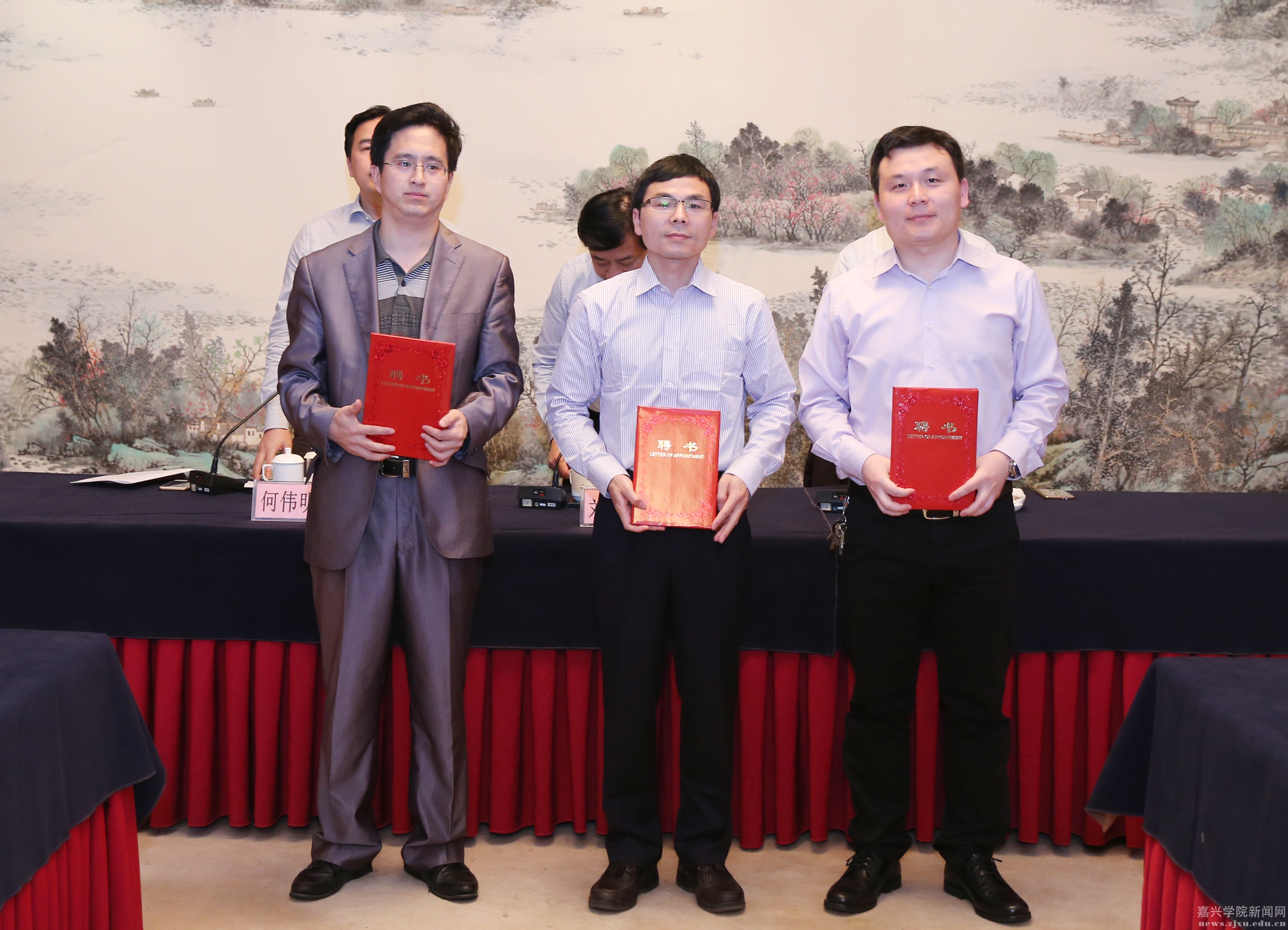 5月5日下午,嘉兴市地方立法咨询专家座谈会暨聘任仪式在富悦酒店三楼嘉兴厅召开。文法学院院长欧阳仁根、副院长童建华,教师马存利、杨华国、屈正林受聘成为嘉兴市首批地方立法咨询专家,市人大主任刘冬生、副主任朱海平,市人大法工委主任何伟明为文法学院5位教师发放聘书。