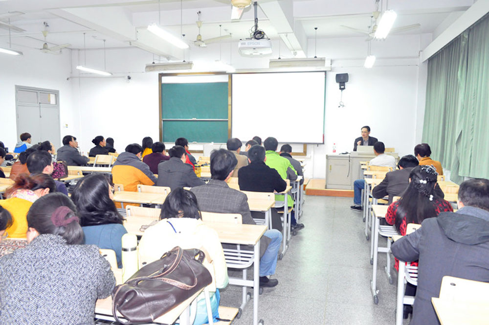 3月31日下午,嘉兴市委副秘书长、嘉兴市委政研室主任朱少平应邀为外国语学院全体教职员工做题为“以树标杆、当标尖的新要求,开创嘉兴‘十三五’发展新局面”的专题报告。