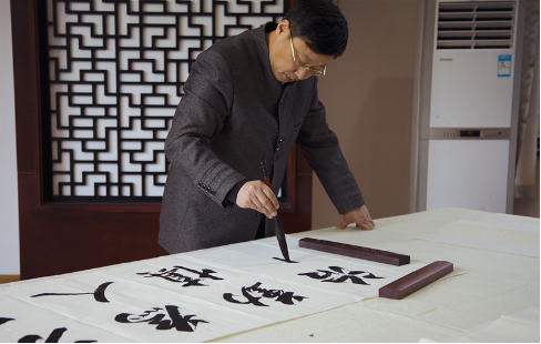 讲座后,庄教授来到南湖书画院现场挥毫,给学校留下了墨宝。