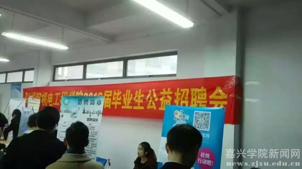 12月5日,机电工程学院2016届毕业生公益招聘会在梁林14号楼举办。此次招聘会是学院与嘉兴市96871平台联合举办,共组织40余家企业免费入场,提供就业岗位800多个。参会企业均经过精心挑选,其中包括嘉兴协鑫环保热电厂、平湖台丽办公自动化设备有限公司、津上精密机床(浙江)有限公司、德西福格汽车配件(平湖)有限公司、嘉善三思光电技术有限公司、嘉兴德邦物流股份有限公司等多行业、多领域的知名优秀企业,提供的岗位专业技能及文化水平要求适合学院专业特色,同时也为毕业生提供多方与社会各类企业面对面交流的机会。