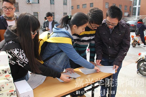 11月10日,由资产经营公司主办,嘉兴学院学工部、团委协办的2015年度“服务之星”现场投票活动在越秀校区春华苑自选餐厅、梁林校区第二食堂门口火热进行。