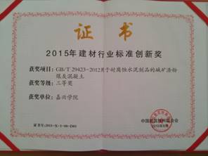 日前,中国建筑材料联合会(原国家建材工业部)在北京召开“全国建材行业标准创新转型升级工作会议”,表彰了一批建材行业创新标准项目,由我校负责完成的国家标准GB/T 29423-2012《用于耐腐蚀水泥制品的碱矿渣粉煤灰混凝土》获2015年度“建材行业标准创新奖”三等奖。我校建筑工程学院刘红飞、蒋元海教授为项目主要完成成员。这是我校第一次获得行业标准创新奖。