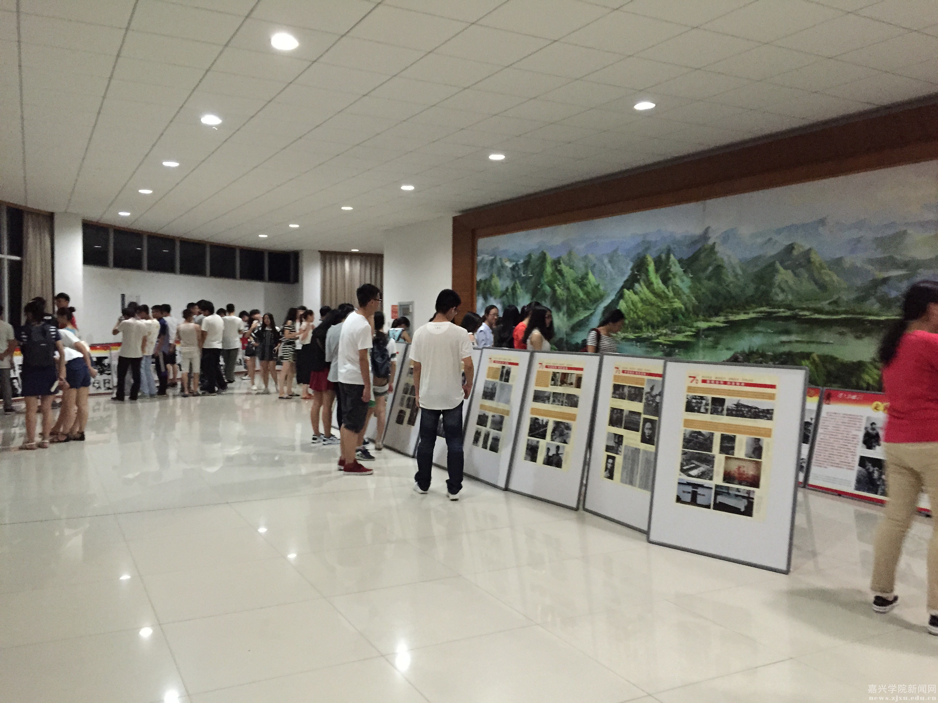 为了配合此次活动,6月24日下午,生物与化学工程学院的学生党员代表、纪念抗战胜利70周年宣讲实践团的同学们在分院领导和老师们的带领下,来到了“一大路”旧址——嘉兴南湖会景园,在这里开展以“弘扬红船精神、重走一大先驱路”为主题的学习实践活动。6月18日至6月25日,团队同学们在分院老师和团学干部的帮助下,联合浙江新四军研究会总会以及嘉兴新四军研究会举办了“抗战胜利70周年思想宣传教育图片展”,展出了反应抗日战争题材的图文板块共70张。图片展以年代为主线,分别展示了我党在抗日战争中的战斗场景、革命先烈英勇就义的事迹和军民合作,共同抗敌的故事。