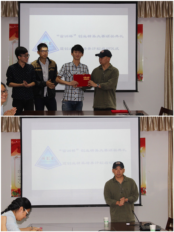 到场嘉宾为获得本次大赛的一、二、三等奖作品颁奖。张雷博士对三个获奖作品一一进行点评,并表示举办创业精英大赛旨在培养学生的创新创业意识,希望同学们能够发现自己的不足,提升自身的综合素质。