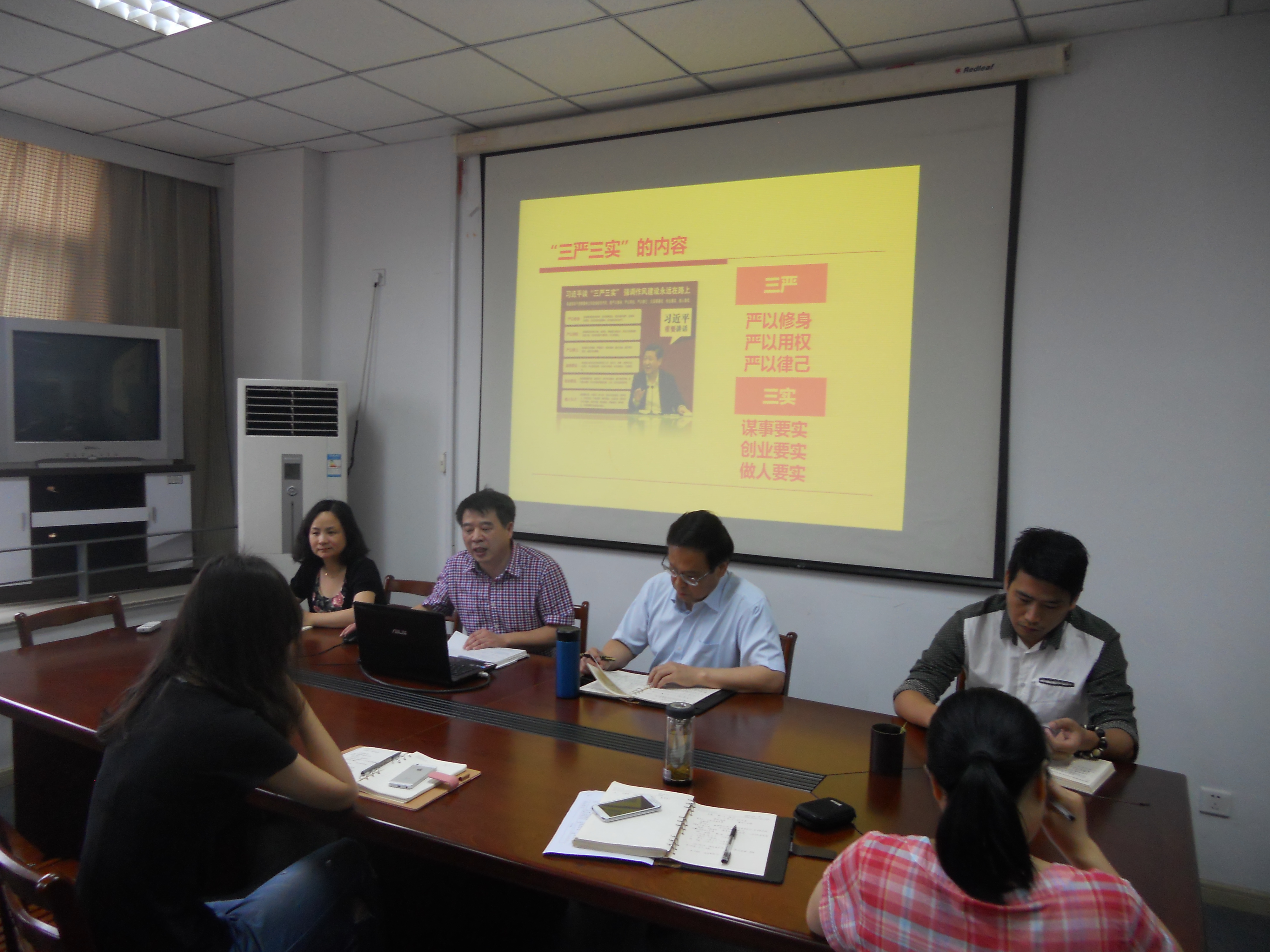 张杰从 “三严三实”的丰富内涵和重大意义、“不严不实”的表现、落实“三严三实”的要求、开展“三严三实”的专题教育方案四个方面阐述了“三严三实”的重要性,并从学校“不严不实”的表现入手分析了学院“不严不实”的三个方面的表现,要求学院党员从知晓、检讨、践行三个层面,自觉落实“三严三实”, 做到对党忠诚、个人干净、敢于担当。
