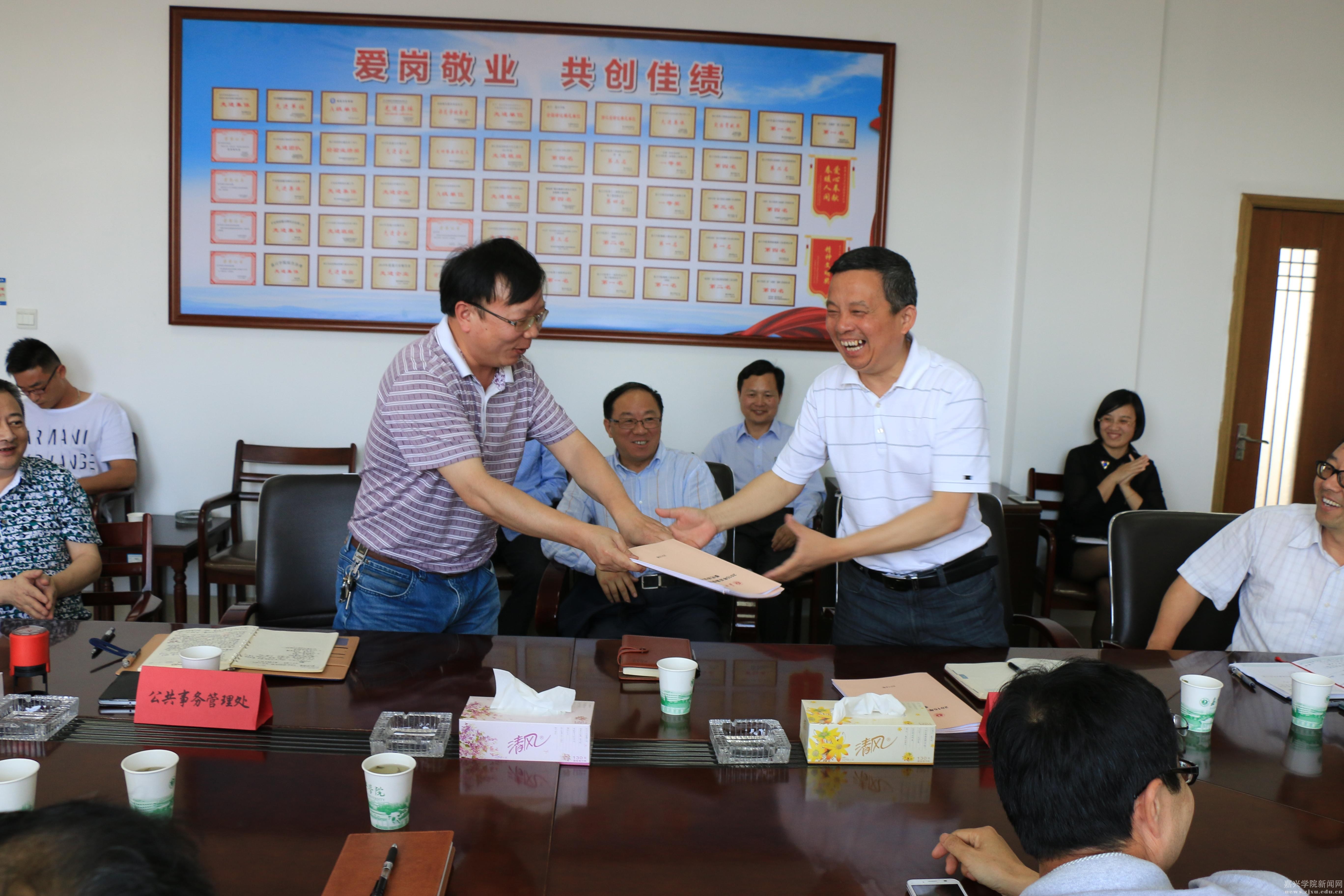 公共事务管理处处长贺征兵和资产经营公司董事长、总经理孙勤分别代表甲乙双方在《嘉兴学院2015年后勤管理与服务委托协议书》签字。贺征兵代表公共事务管理处对资产经营公司全体员工在2014年的辛勤工作表示衷心感谢,从监管的角度回顾总结并肯定了资产经营公司2014年后勤服务工作,对《嘉兴学院2015年后勤管理与服务委托协议书》修改部分进行了说明,并从追求师生满意、加强日常巡查和提高工作效率三个方面提出了做好后勤工作的具体要求。孙勤总经理代表资产经营公司从工作内容、服务态度和协议要求等方面对做好学校后勤管理与服务工作作了发言和承诺。