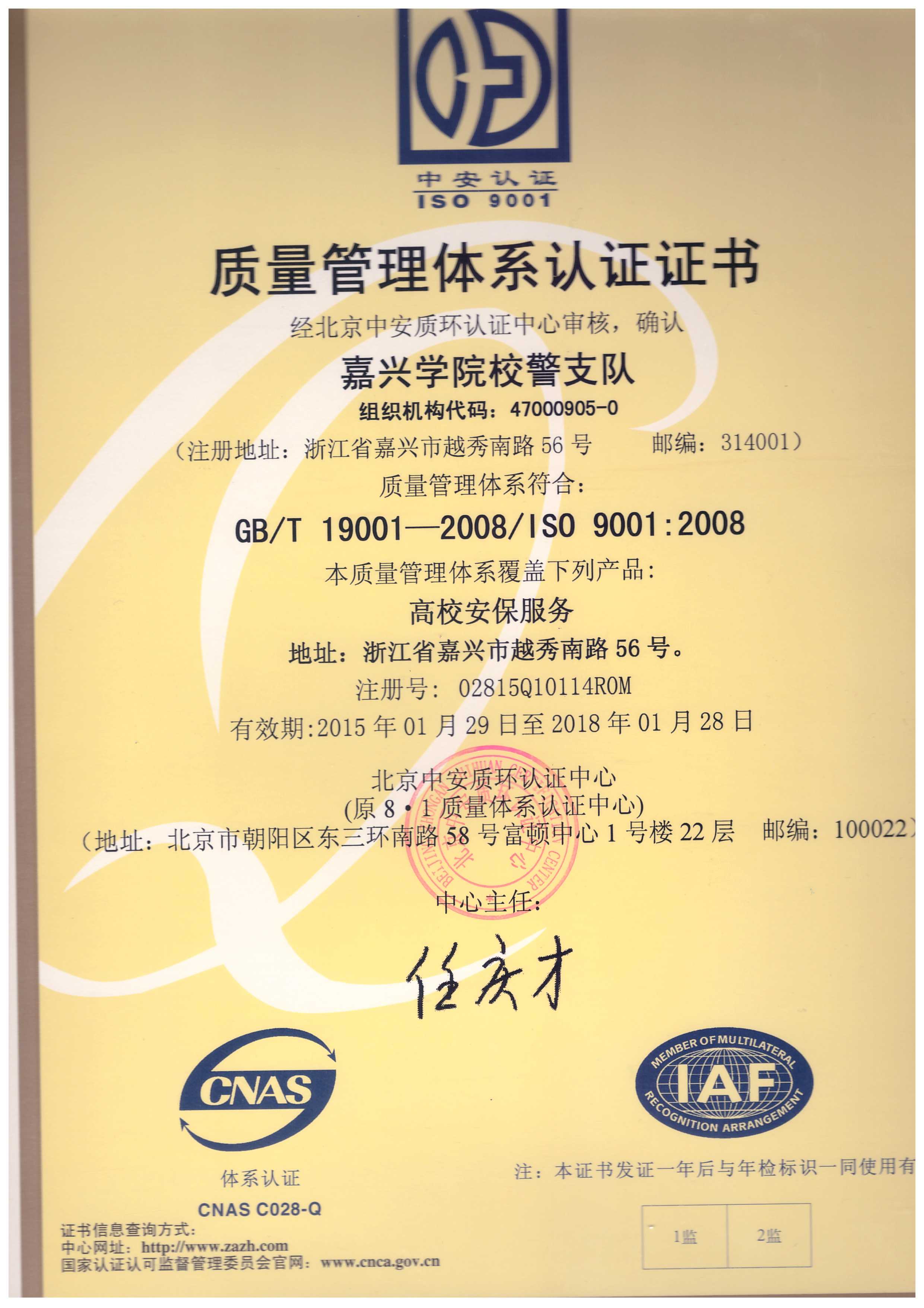 1月28日,我校校警支队顺利通过ISO9001:2008认证审核。