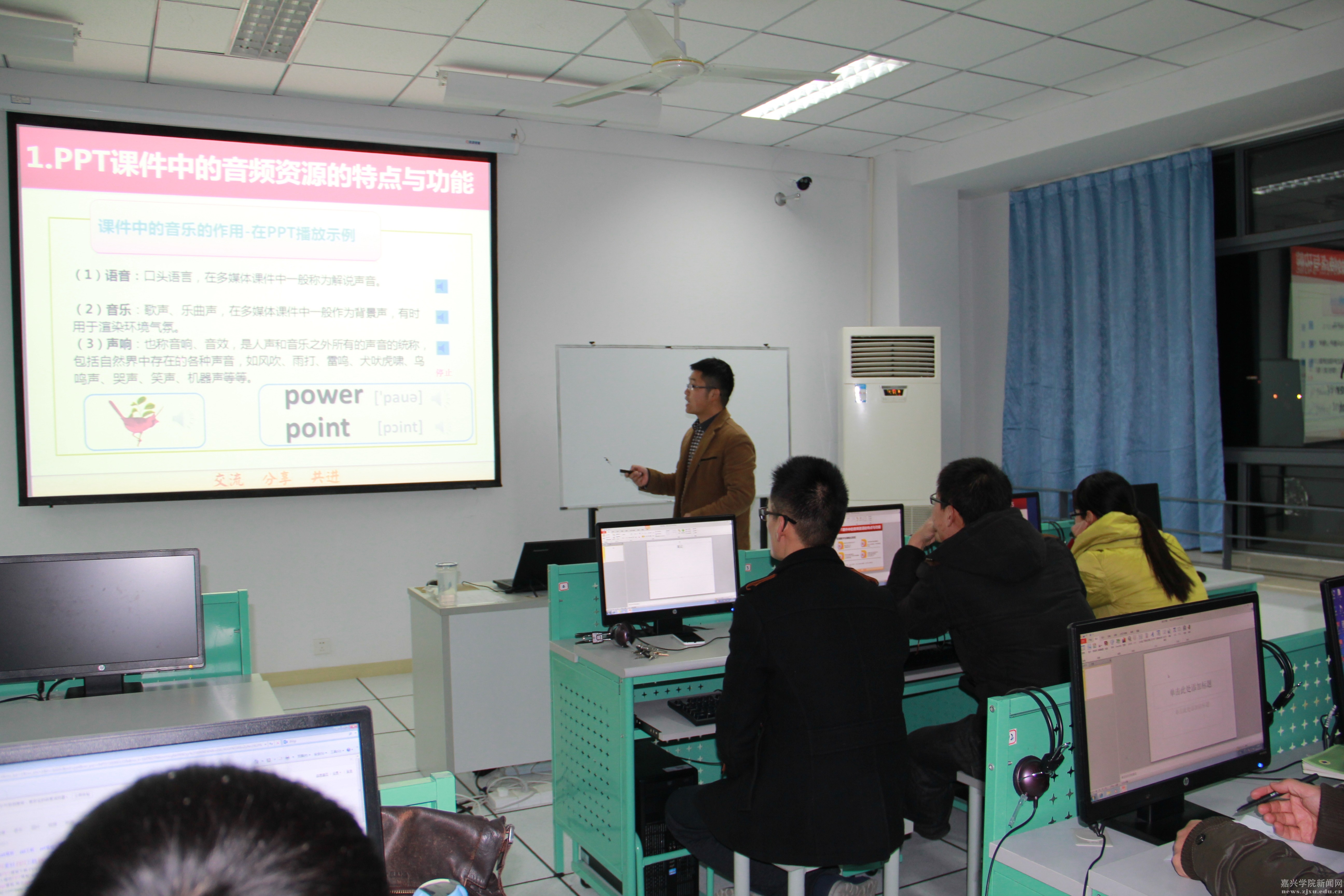 本期培训分别聘请了数理与信息工程学院的刘小晶老师、教务处的李朝峰老师以及教师教育学院的赵瑞军老师,主讲了Powerpoint制作技术和Blackboard网络课程发布平台相关知识。