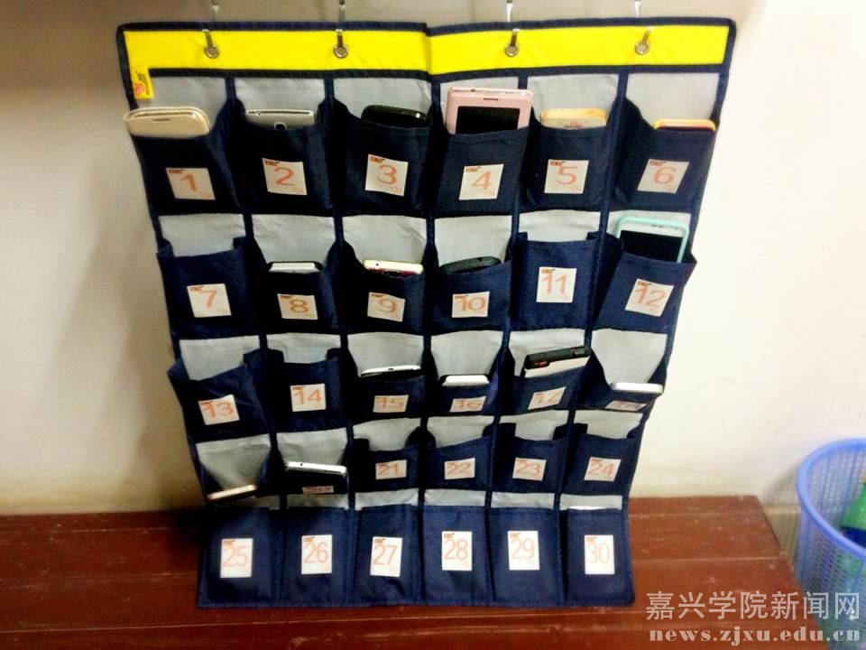 学院为所有在校班级(毕业班除外),每班配备一个手机挂袋,该手机挂袋由班里指定人员保管,每节课上课之前,班里同学自觉将手机调成振动或关机,然后放入手机挂袋,课程结束后,才可以拿回手机。