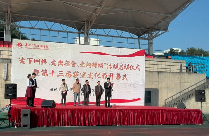 11月15日上午,由学院团委举办的“走下网络、走出宿舍、走向操场”活动启动仪式暨第十三届寝室文化节开幕式在越秀校区田径场举行。校长助理、南湖学院院长胡俊云宣布活动开幕。