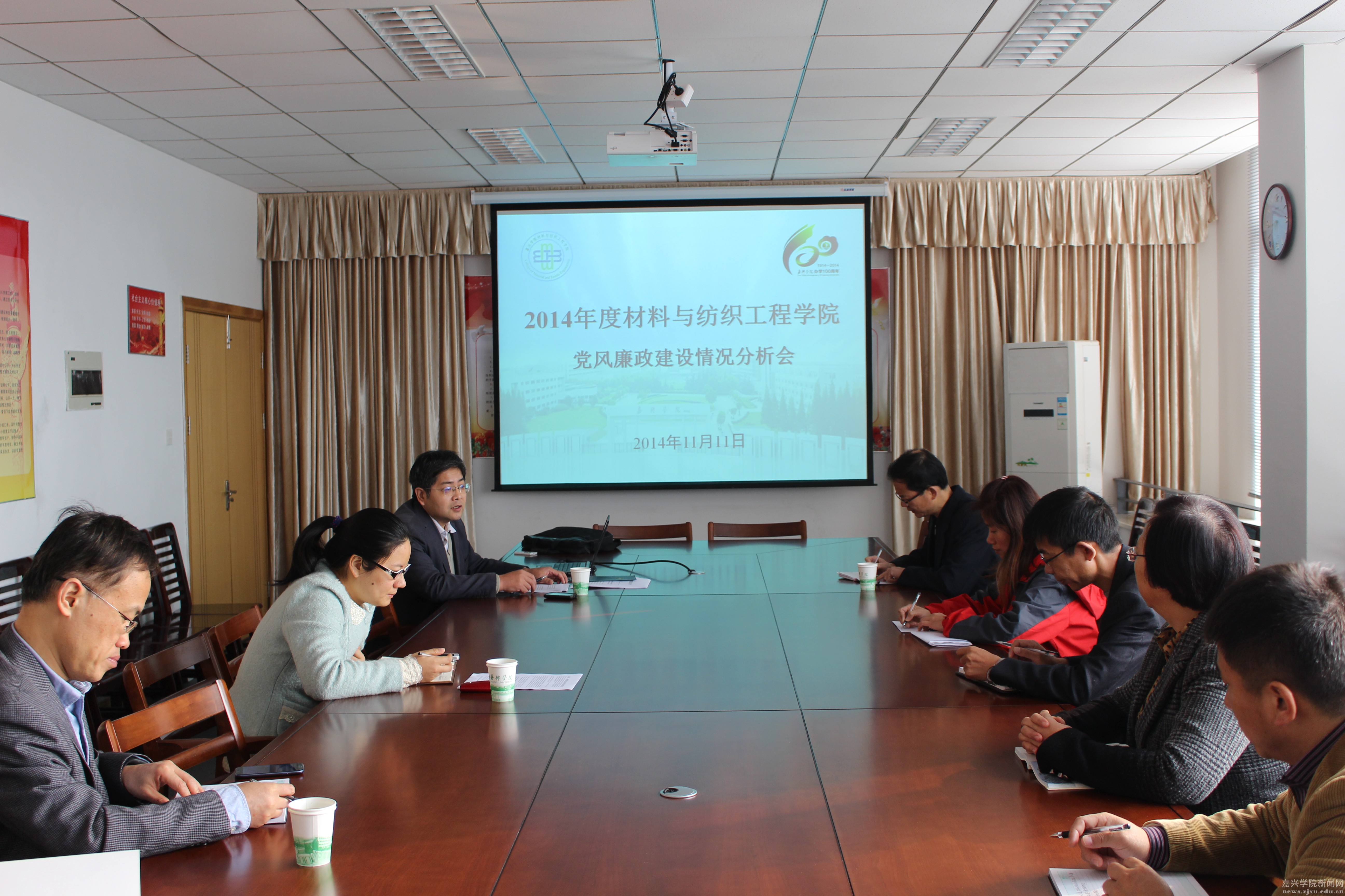 11月11日上午,材料与纺织工程学院召开了党风廉政建设情况分析会,按照学校纪委要求对学院本年度廉政风险防控工作进行分析、梳理和总结。学院党委委员、研究所所长、实验中心主任及校级特约监察员参加了会议。学校纪委办主任、监察处副处长韩宝明到会指导。