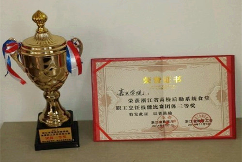 10月31日至11月1日,浙江省高校后勤系统食堂职工烹饪技能比赛在浙江商业职业技术学院举行。代表我校参赛的饮食服务公司荣获团体三等奖,面点师蔡秀琴获得“特色面点组”个人二等奖,厨师陈国盛获得“养生套餐组”个人三等奖,厨师沈法根获得“普通套餐组”个人三等奖。