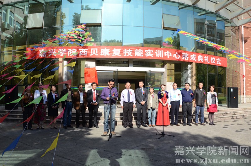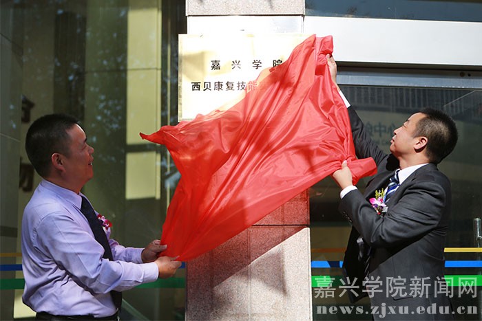 校党委副书记史永安和王维杰校友共同为嘉兴学院西贝康复技能实训中心揭牌,并对王维杰校友心系母校,支持母校发展表示了衷心的感谢。