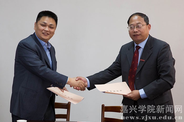 随后,吕延勤与杨绍校先生分别代表嘉兴学院和扳鞍实业奖励基金双方签订了协议。根据协议,杨绍校校友用其公司所留本金人民币350万元在嘉兴学院设立冠名基金——扳鞍实业奖励基金,每年以该基金产生的利息捐赠,奖励嘉兴学院师生教、学领域卓越表现,支持科研与创新,鼓励综合发展,促进学院对竞争力人才的培养。