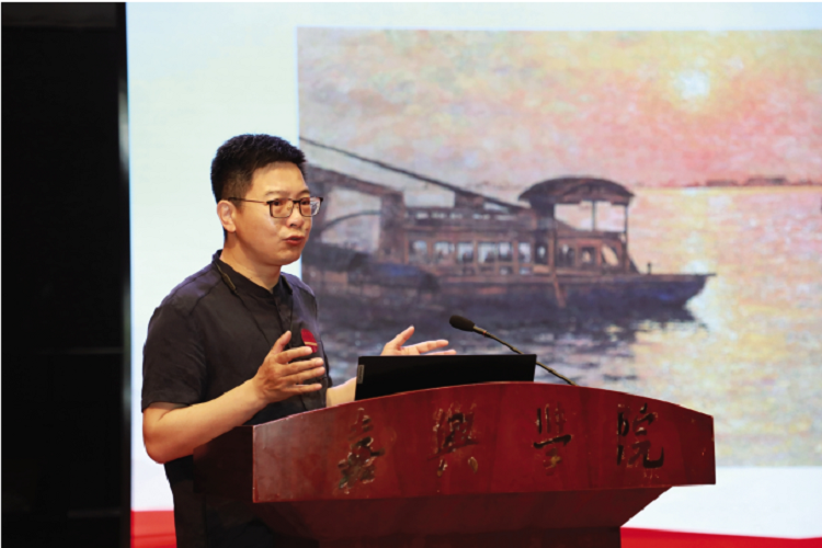 以上简要介绍了建党初期的一些美术作品,是由《中国美术报》策划且正在做的第一个篇章。今天在嘉兴做此分享其实是有原因的,嘉兴南湖的红船就是我们党梦想起航的地方。红船精神包含开天辟地、敢为人先的首创精神,坚定理想、百折不挠的奋斗精神,立党为公、忠诚为民的奉献精神。当时毛泽东还是一个二十多岁的青年时,心中就已经树立了这样的理想。正是带着这样的理想,他能在青年时就拥有极强的社会意识与社会影响力,毫不畏惧革命的苦难险阻。毛泽东的成长轨迹对于我们来说有积极的借鉴意义:即人生一定要有自己的理想信念。我们在生活、学习中,一定会遇到困难,但凭借自己心中信念,就一定能战胜困难,战胜自己。