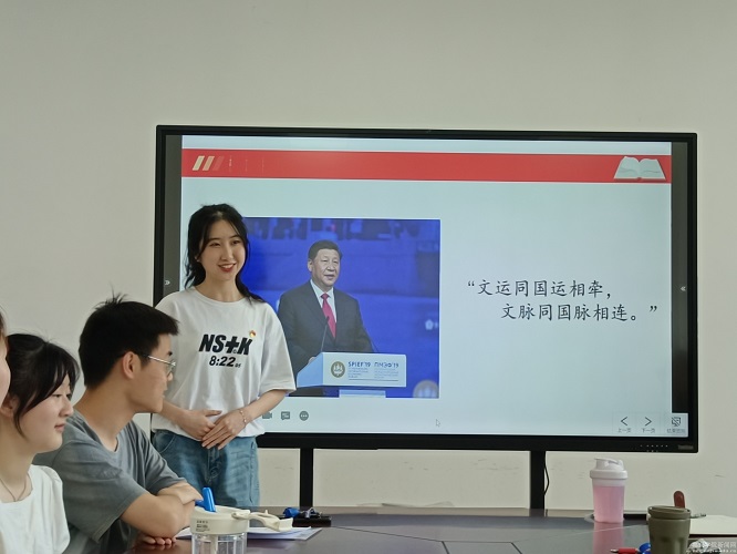 6月20日,外国语学院召开“中国历代绘画大系”嘉兴特展双语讲解志愿者座谈会。校党委副书记吴云达出席,学院领导班子成员和担任“中国历代绘画大系”嘉兴特展双语讲解的学生志愿者参加座谈。会议由学院党委书记周钰主持。