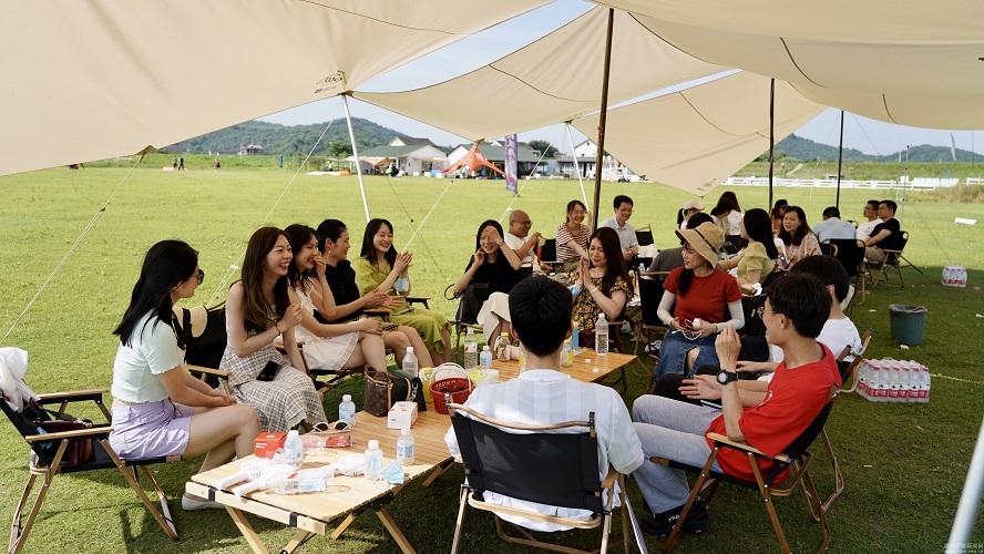 联谊活动选择在海宁尖山露营基地举行,参加活动的嘉宾通过分组搭建帐篷、数字抱团游戏等“破冰”活动拉近了彼此的距离。中午,大家一起烹制烧烤和小火锅,分享下厨经验心得,并通过小组轮转的方式进行了更加深入的交流互动,增进了彼此的了解,晚上的户外电影和篝火音乐会将活动推向高潮,现场欢声笑语,气氛十分热烈。