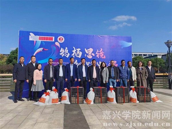 九霄澄净,金秋流光。10月19日上午,以“鹄栖思镜、鲤跃虹源”为主题的天鹅赠送和锦鲤接收仪式在浙江传媒学院桐乡校区举行。浙江传媒学院后勤服务中心主任缪春华、党委副书记王丽、副主任伍林军;我校后勤服务中心主任郑伟栋,后勤服务有限公司总经理吴国祥、副总经理徐建辉出席仪式。两校相关部门负责人参加仪式。