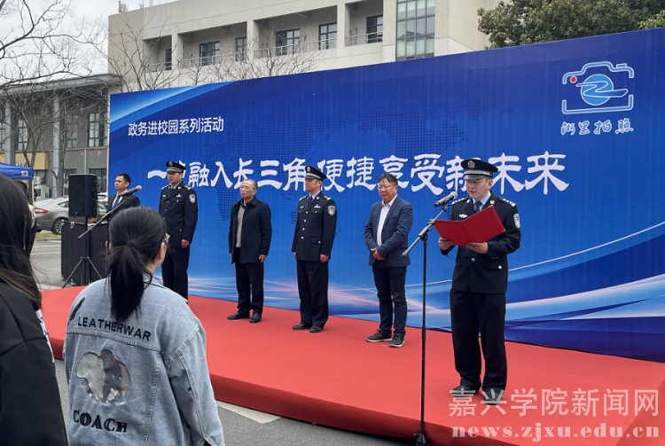 3月16日,“一照融入长三角,便捷享受新未来”政务服务进校园启动仪式在我校梁林校区举行。校党委副书记钱方明,嘉兴经开区党工委委员、管委会副主任、公安分局局长金郁,嘉兴市公安局出入境管理局局长潘新华出席仪式。嘉兴经开区公安分局政委张建林主持仪式。