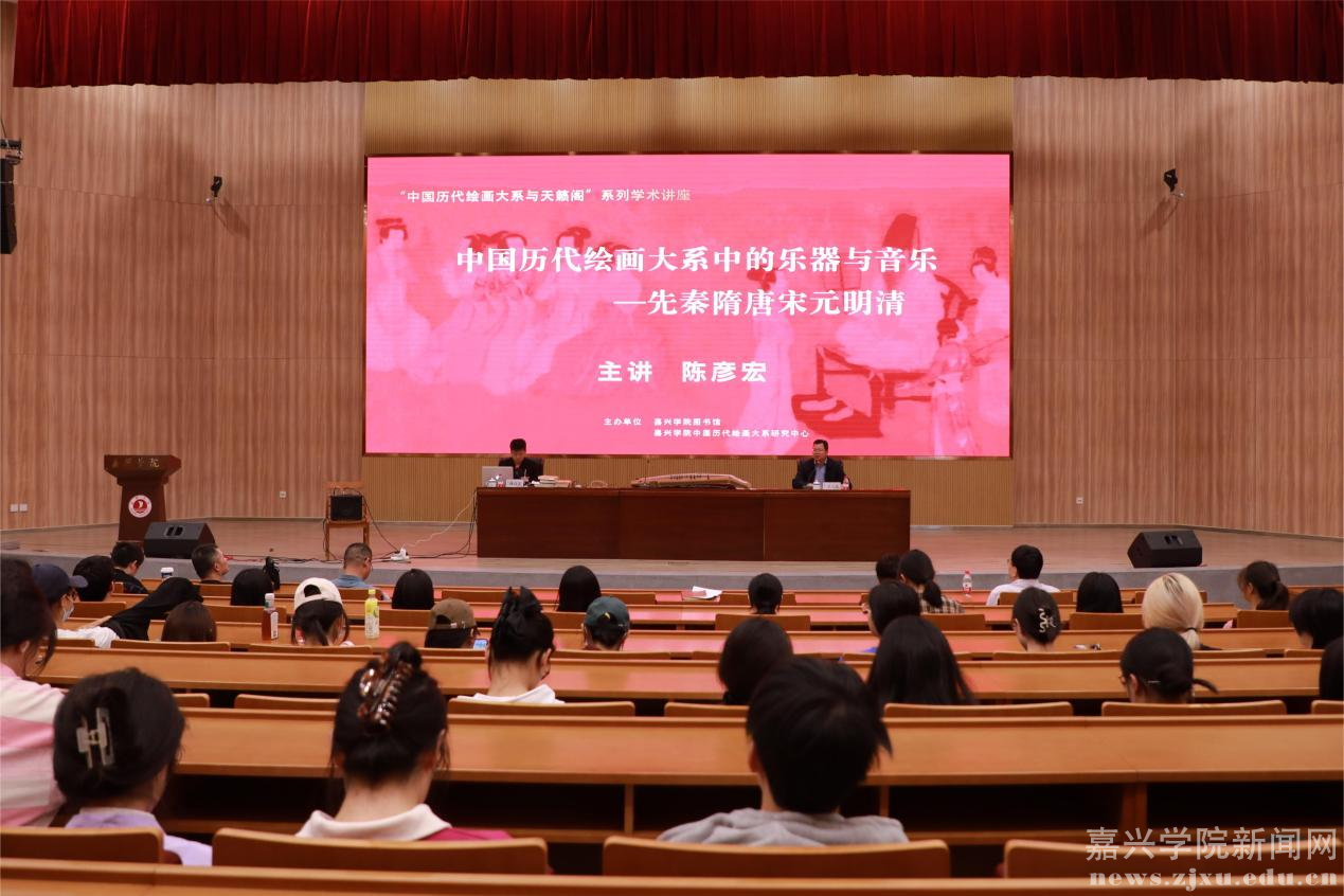 10月19日,以“中国历代绘画大系中的乐器与音乐——先秦隋唐宋元明清”为主题的学术讲座在梁林校区行政楼报告厅举办。该讲座是“中国历代绘画大系与天籁阁”系列学术讲座之一,由我校图书馆和中国历代绘画大系研究中心联合主办。我校特聘教授、吉他演奏家陈彦宏主讲。校党委副书记、中国历代绘画大系研究中心主任吴云达主持讲座。嘉兴市文联三级调研员傅琦红出席讲座。