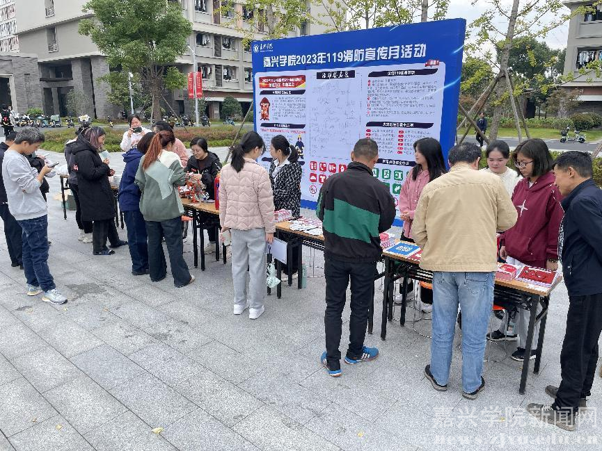 11月9日,嘉兴学院组织开展消防水带连接及灭火器使用比赛、现场答题竞赛、横幅签名、消防宣传手册发放、违章电器展示等宣传活动。