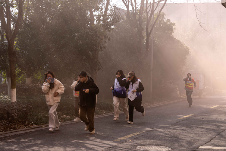 下午1点30分,集合声响起,所有参加演练人员在和兴苑学生公寓2号楼南侧篮球场集结,演练指挥人员讲解了如何正确逃生及演练注意事项。演练开始后,全体参加演练学生从疏散楼梯有序进入和兴苑学生公寓2号楼。相关人员点燃烟雾弹后,1名参加演练学生模拟发现火情并按下火警报警按钮。学生公寓值班人员立刻打开所有安全出口门,参加演练学生听到警报声后,立刻从两边疏散楼梯逃生,各楼层疏散引导人员在楼梯口疏散引导学生安全有序撤离至集合地点,并在疏散过程中大声提醒“楼内发生火警,请大家不要慌张,有序撤离”。所有参加演练学生安全撤离到集合地点后,相关人员清点无误,演练指挥人员宣布本次演练顺利结束。