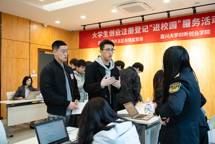 3月28日下午,由嘉兴市经济开发区市场监管局、学校创新创业学院共同主办的大学生创业注册登记“进校园”公益服务活动在大学生创业实践园举行。