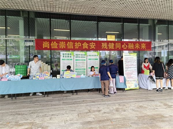 食安进校,健康同行。活动现场,醒目的红色横幅“尚俭崇信护食安,残健同心融未来”悬挂在桂园餐厅广场;志愿者们现场分发食品安全宣传资料,积极邀请师生参加食品安全有奖知识竞答,并送上精美礼品。现场还设置了咨询区,为师生提供食品安全问题的各类咨询服务。