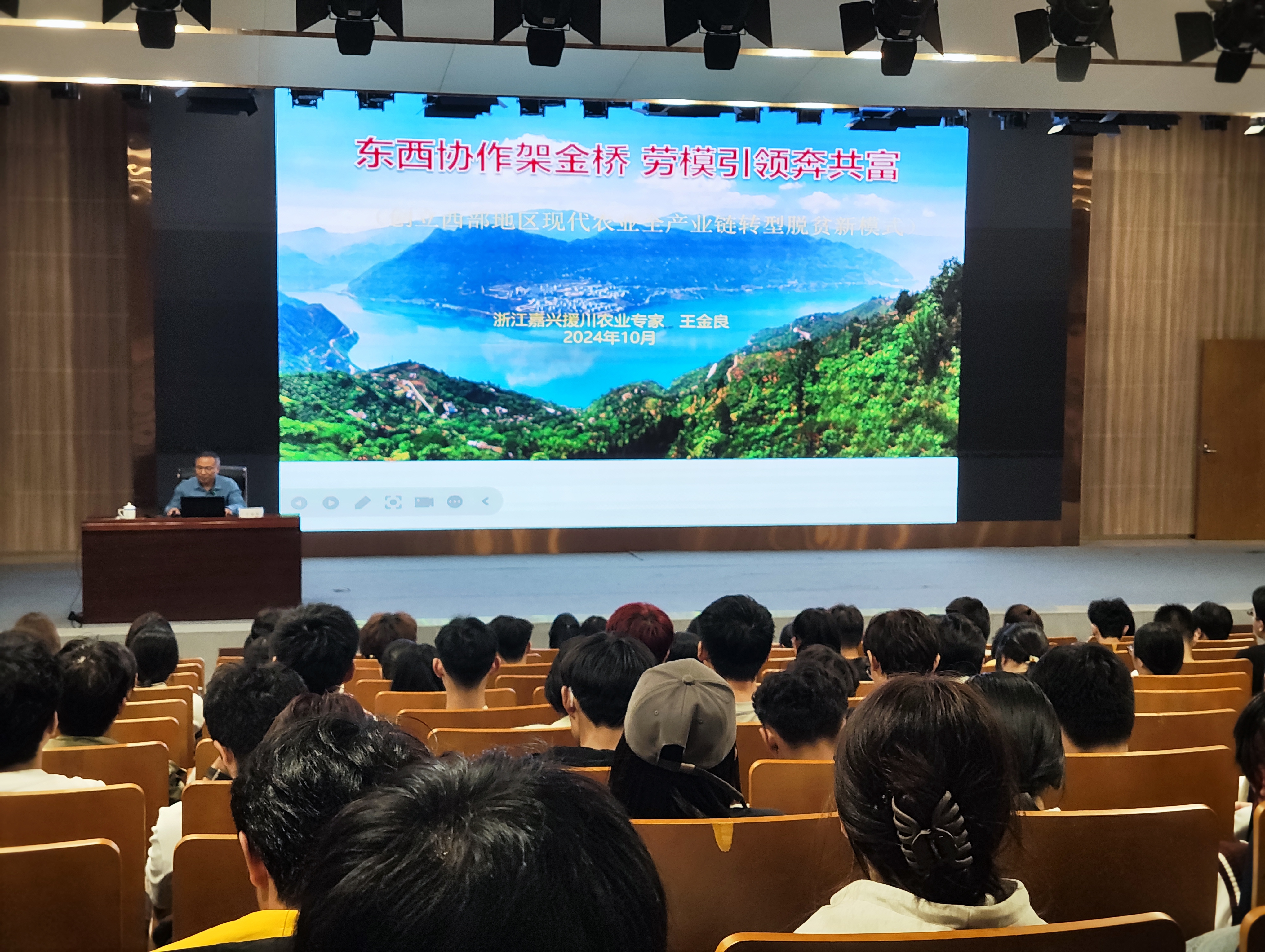 10月9日下午,由马克思主义学院、红船精神传承名师工作室主办的“劳模进课堂”系列讲座在学术报告厅举行,本次课邀请援川农业专家王金良为大家作题为“东西协作架金桥,劳模引领奔共富”的讲座。